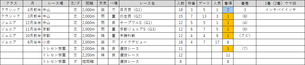 所有スキル :良バ場◎ 道悪○ 晴れの日○ 曇りの日○ 雨の日◎ 好転一息