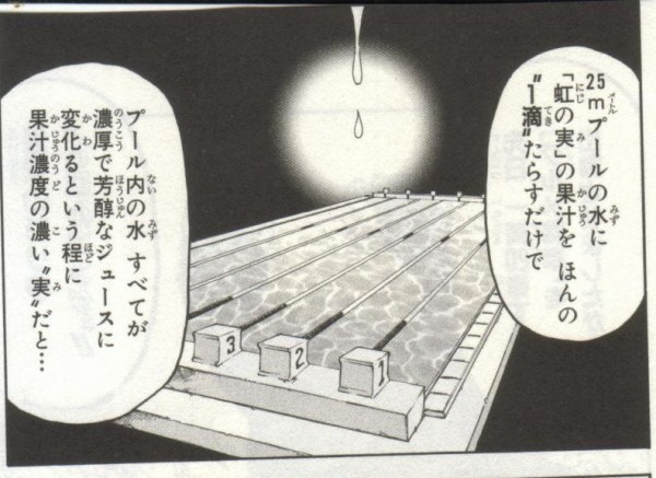 一滴=1cc垂らすだけでプールが濃度100%のフルーツジュースになるとすると虹の実の原液は