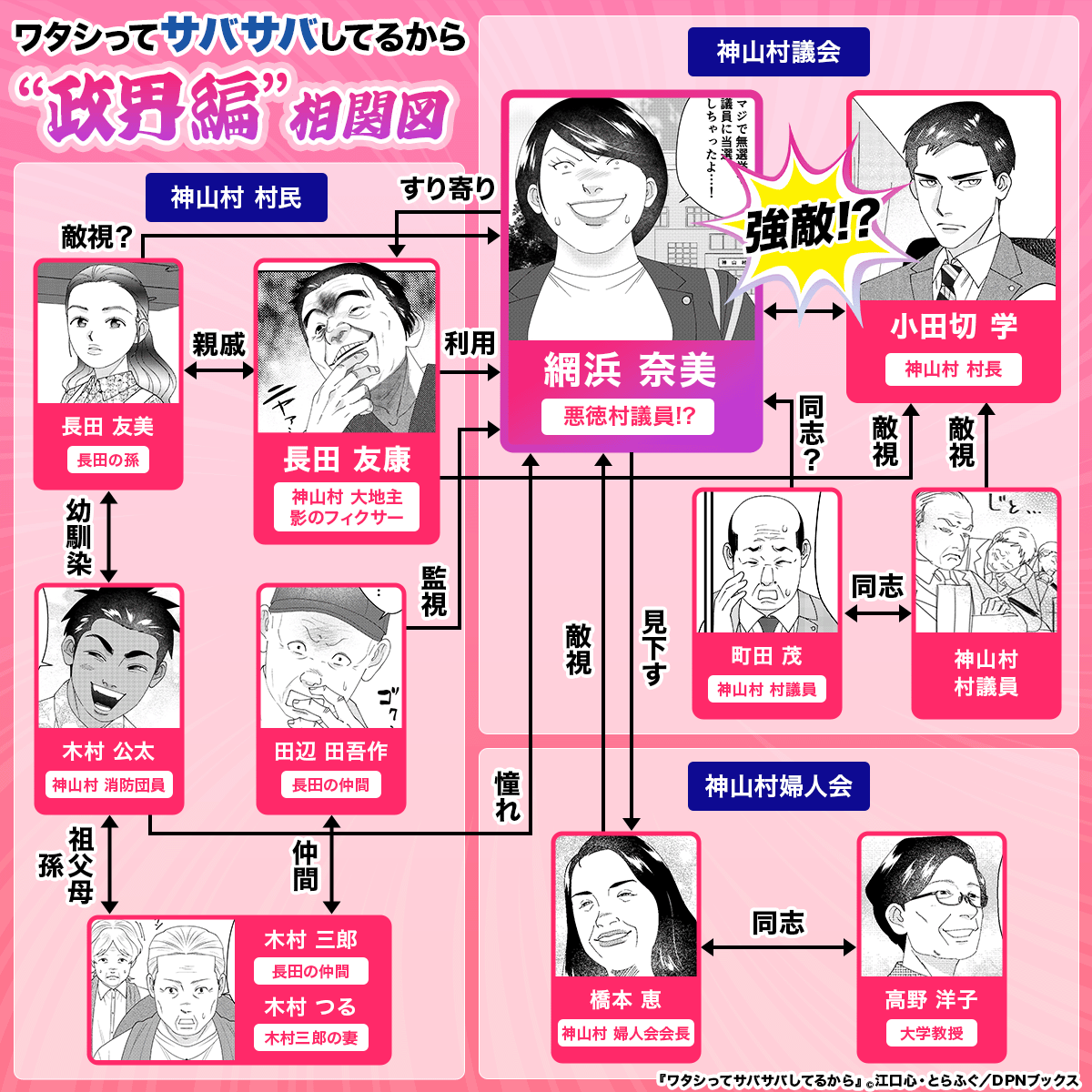 村社会勢力図って感じで見てるだけでドロドロしてそうでサバ女がすっと効いてくる構成だな!