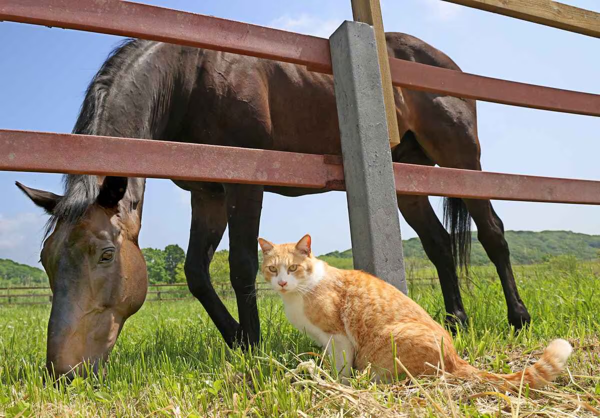 YouTubeとかの海外の動画でも牧場の猫ちゃんが馬と仲良くしてるのは割とある