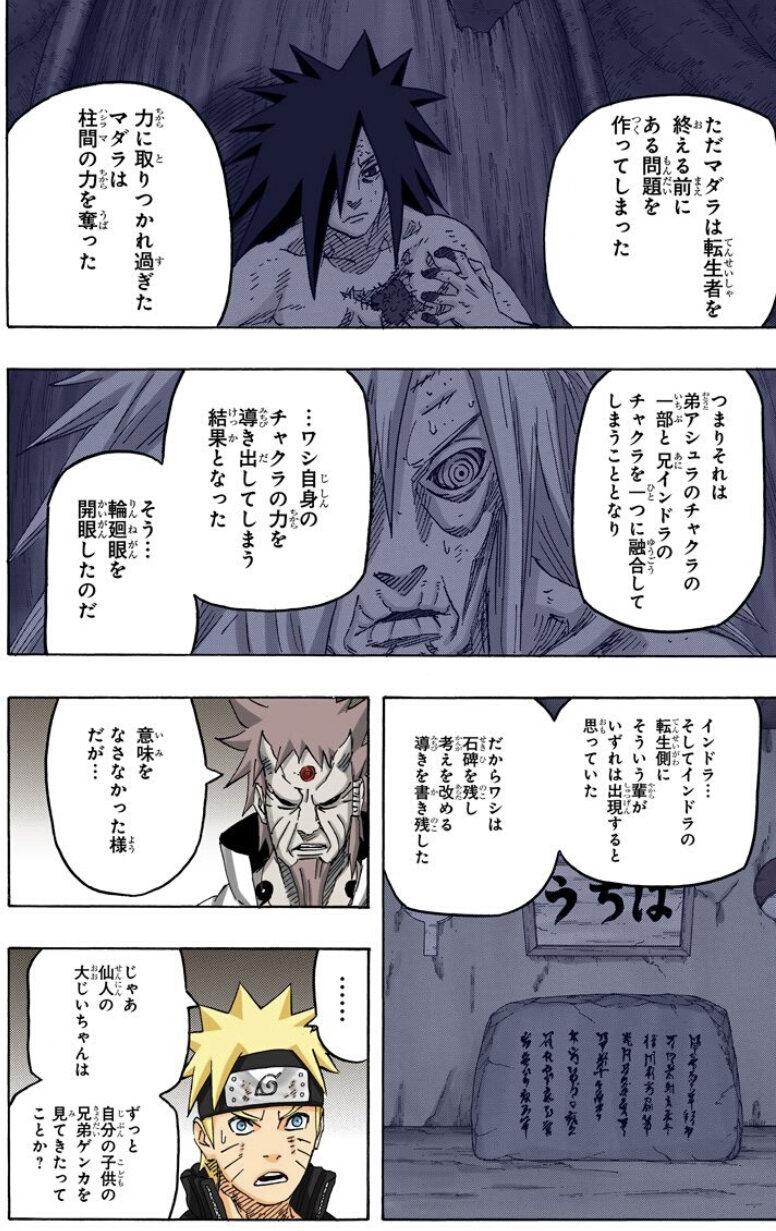 「柱間の回想の時は結構コロコロ表情変わってるのにエドテンマダラって同じような好戦的な笑顔ばっかだな…」なんて読者の感想があったりするわけか