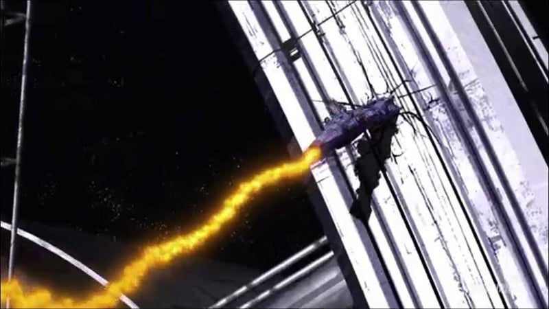 結果、キラ・ヤマトは、その威力も知らぬまま、320mm超高インパルス砲アグニを発射し、敵モビルスーツを退却させることには成功したものの、ヘリオポリス構造体に甚大な被害を及ぼした。また、この一撃は、ザフト軍奇襲部隊に非常な危機感を与え、彼らの、再度のコロニー内侵攻を促したとも言えよう。