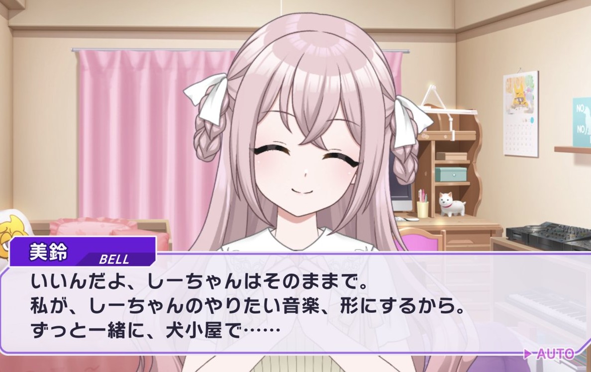 今回のイベントシナリオはユニコードがメイン。バイナルの看板娘になった面々の姿が初めて描かれたけど派手な髪飾りをしてないミチルは割と新鮮。