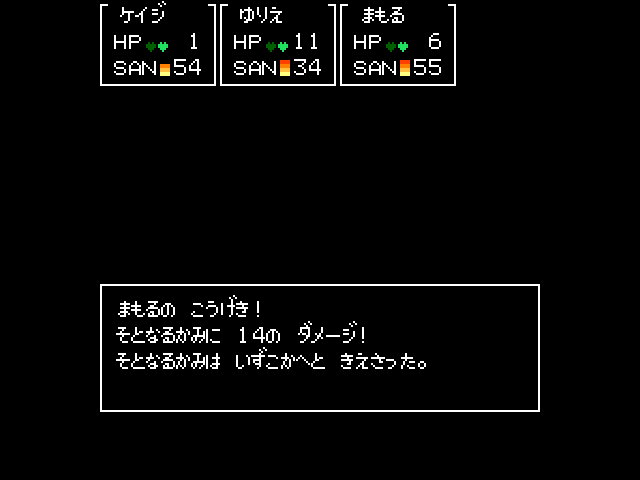 まあ、いいや。ゆりえちゃんのSANを少し回復させて進めます。