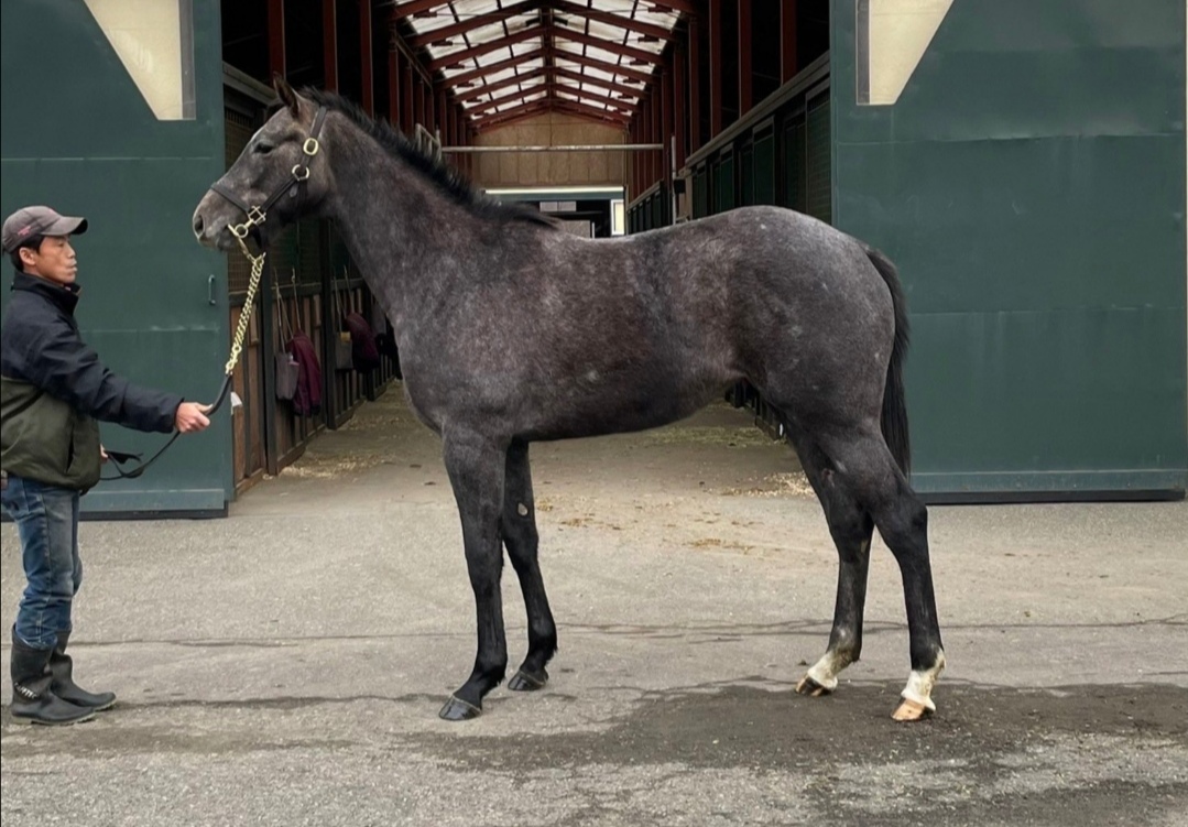 いずれ真っ白になるはずの芦毛の牝馬です。