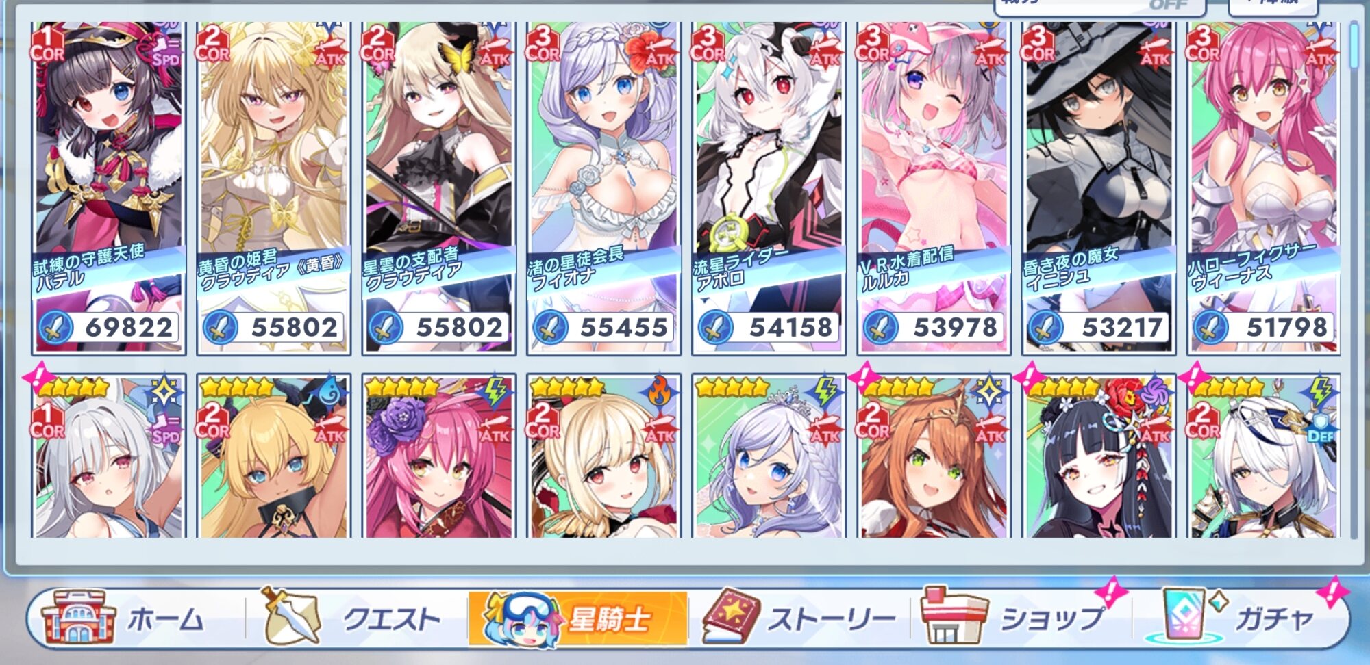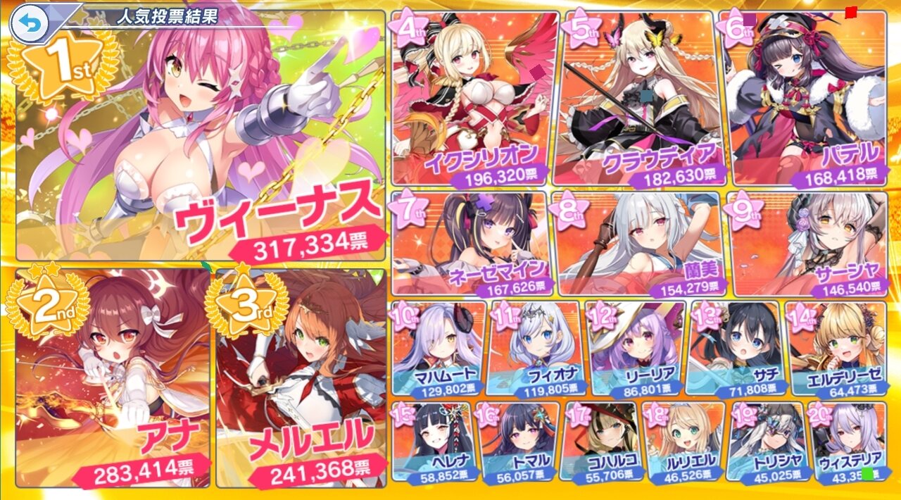 ある意味セシアとアポロがtop2で次点でパテルその次にヒトリジュエリーナミエルソフィアフニの横並びのイメージなんだぁ