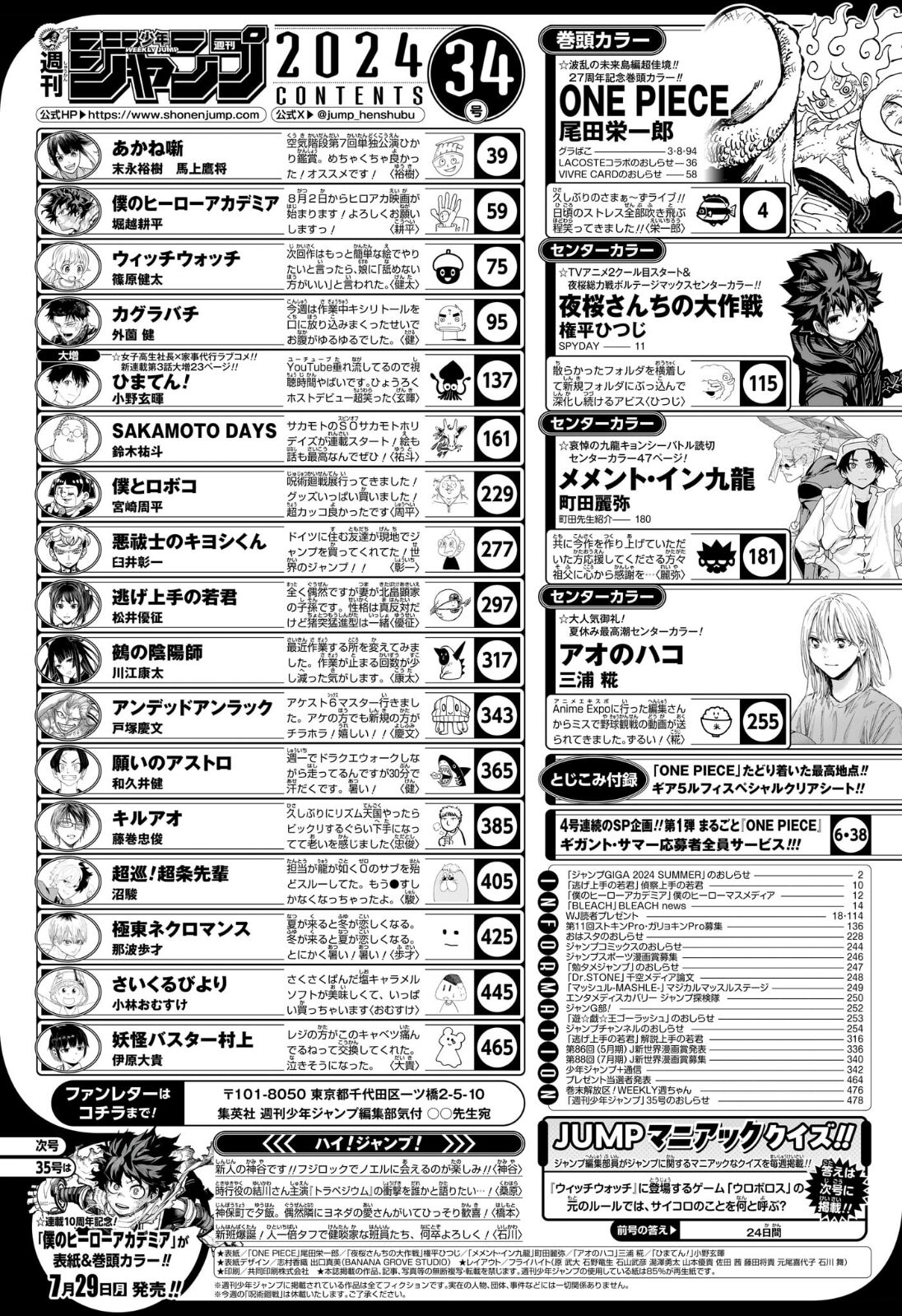 少なくとも巻頭はない、いくらなんでも周年巻頭と時期が近すぎる - 196二次元好きの匿名さん24/07/22(月) 15:49:11