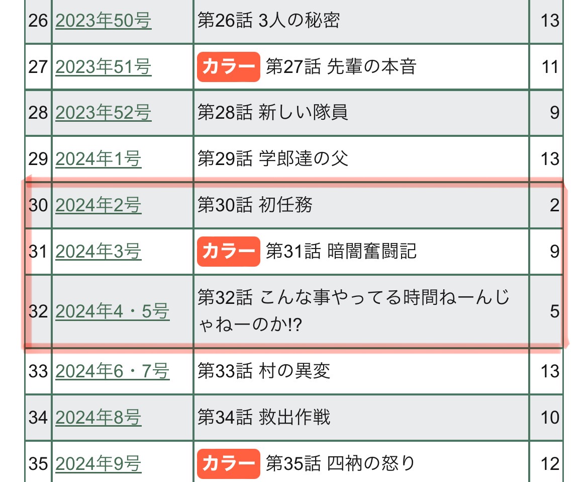 カグラの場合はそもそも合併号明けから周年巻頭来てもおかしくない時期に突入するからそこまでカラー連発で無茶させないと思い…たい…分からん