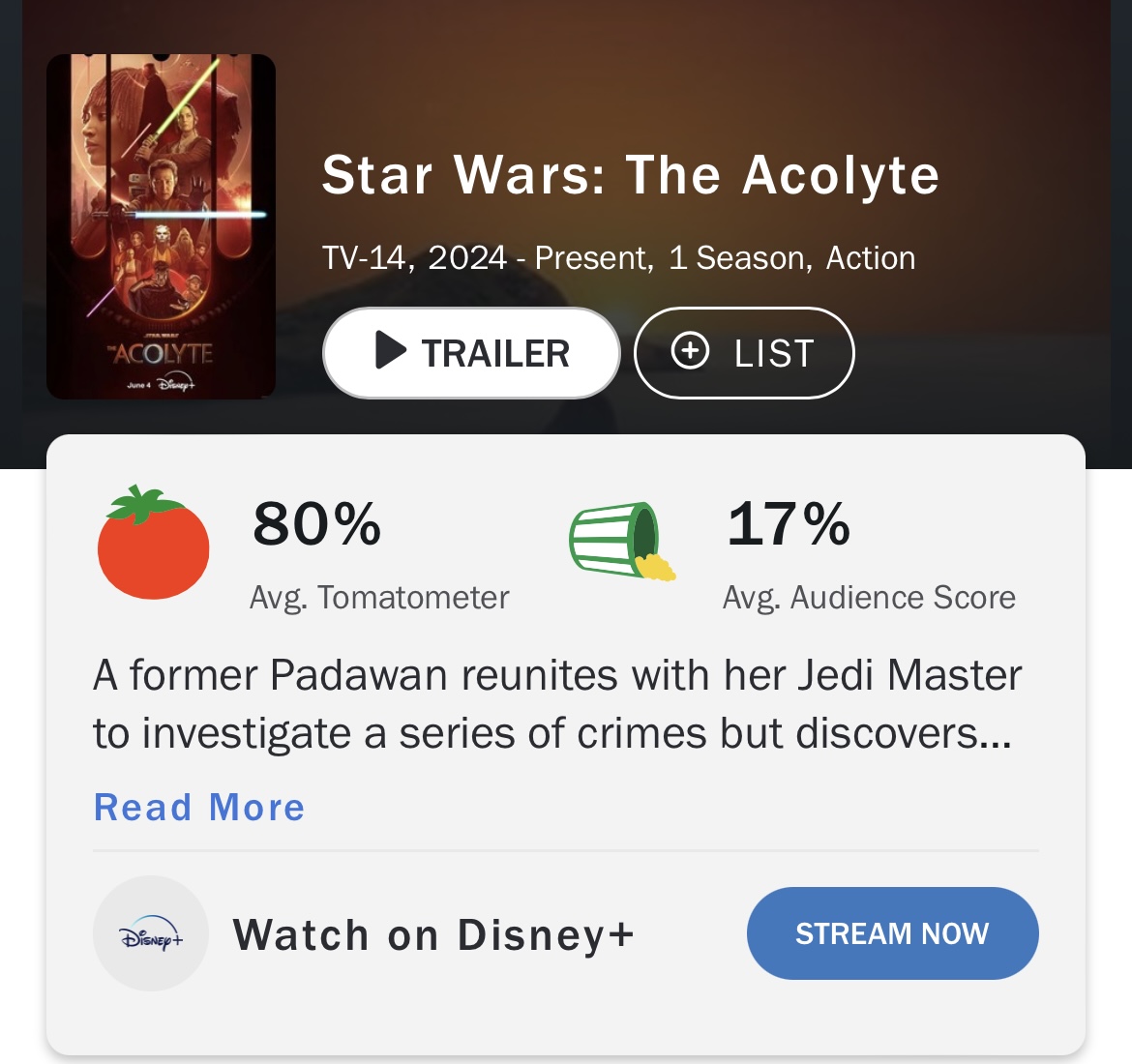 恐らくアコライトはおろか最後のジェダイも見たことないただただスターウォーズを叩きたいカスだ