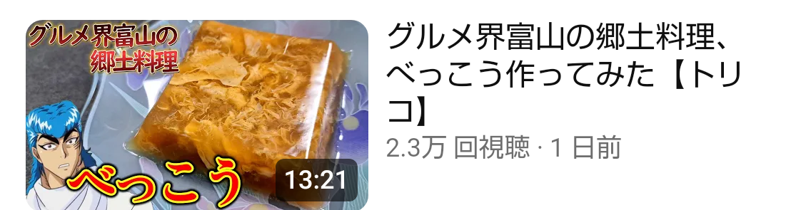 >>15 待てよ、そもそも最初が鯵のなめろうだったりの普通な料理だったのがトリコの料理再現もやるようになってきただけなんだぜ おとん...トリコさぁん魂に宿してるやつの料理動画って普通なのかな
