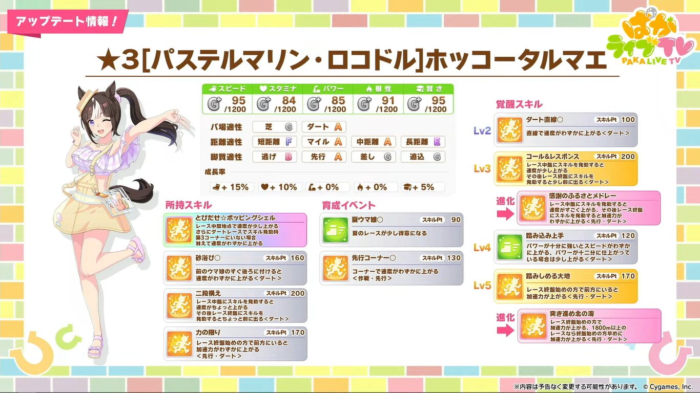 続き、でコーレス進化に加速ついてるから、終盤入って最速で発動するなんらかのスキルが見つかればたぶん他のコースでも強い
