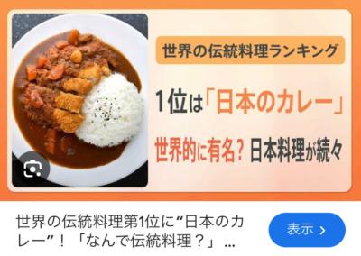 世界の伝統食のランキングなんて色々ある中でたまたまカツカレーが1位だったランキングを取りざたすのもちょっと変だと思うんだよね