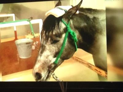 炎症の進行が原因で喉嚢に接する頸動脈が破れて馬房が血まみれになるほどの大量の出血を起こし、生命が危ぶまれる重篤な状態に至った。合計18リットルの輸血を行うなどの治療が施された ←ひえっ
