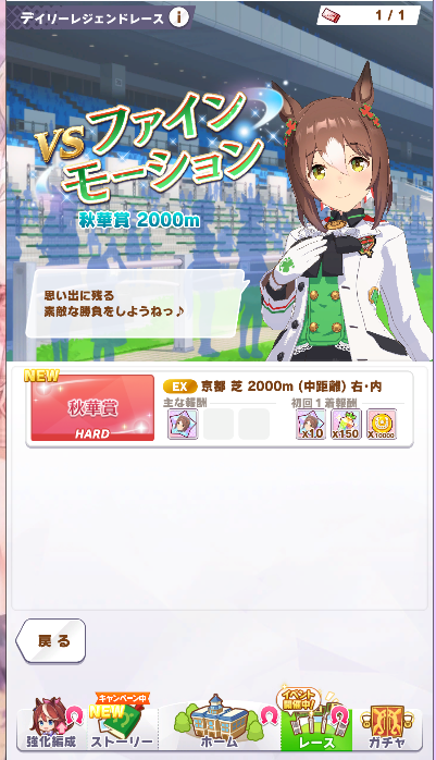 さて僕がカレンチャンのデイリーレジェンドレースに挑み続けたきっかけですが、春のG1記念キャンペーンにて高松宮記念に勝利することで手に入るピースを手に入れ「折角だから解放しよう」と決めたからです