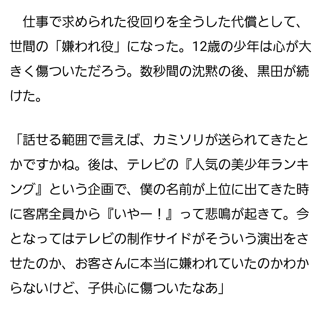 その子役は「スタッフさんにそう指示されたからその通り対応しただけです。お金を頂いてるので言われた通りの仕事はします」と毅然と対応してたけど、アイドルファンの視聴者のことを考えられてない・そんなんじゃ消えるとか的外れな指摘ばかりで…この場合文句あるならテレビ局に言うべきだろ…子役のキレッキレ発言にアイドルたじたじ!な台本書いたのテレビ局なんだし