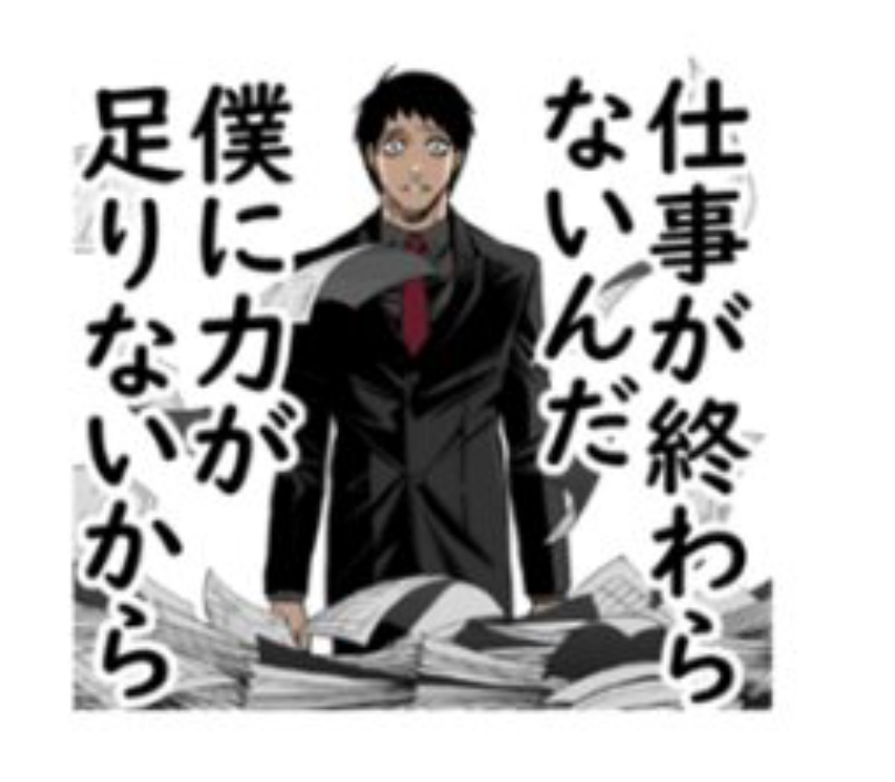 仕事が終わらないんだスタンプはこの前のおまけ落書きのほうが悲壮感強そう