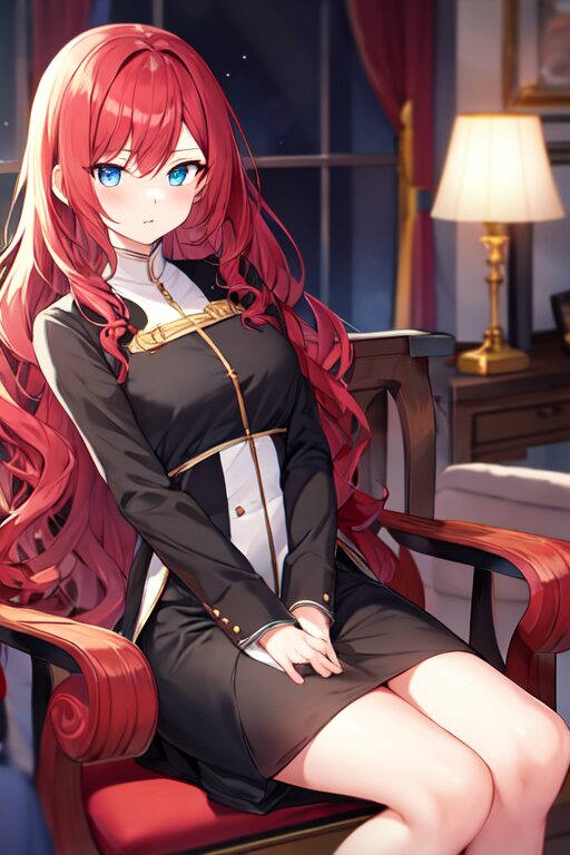 赤髪ロング、黒い祭事の衣装、脱げば結構胸が大きい