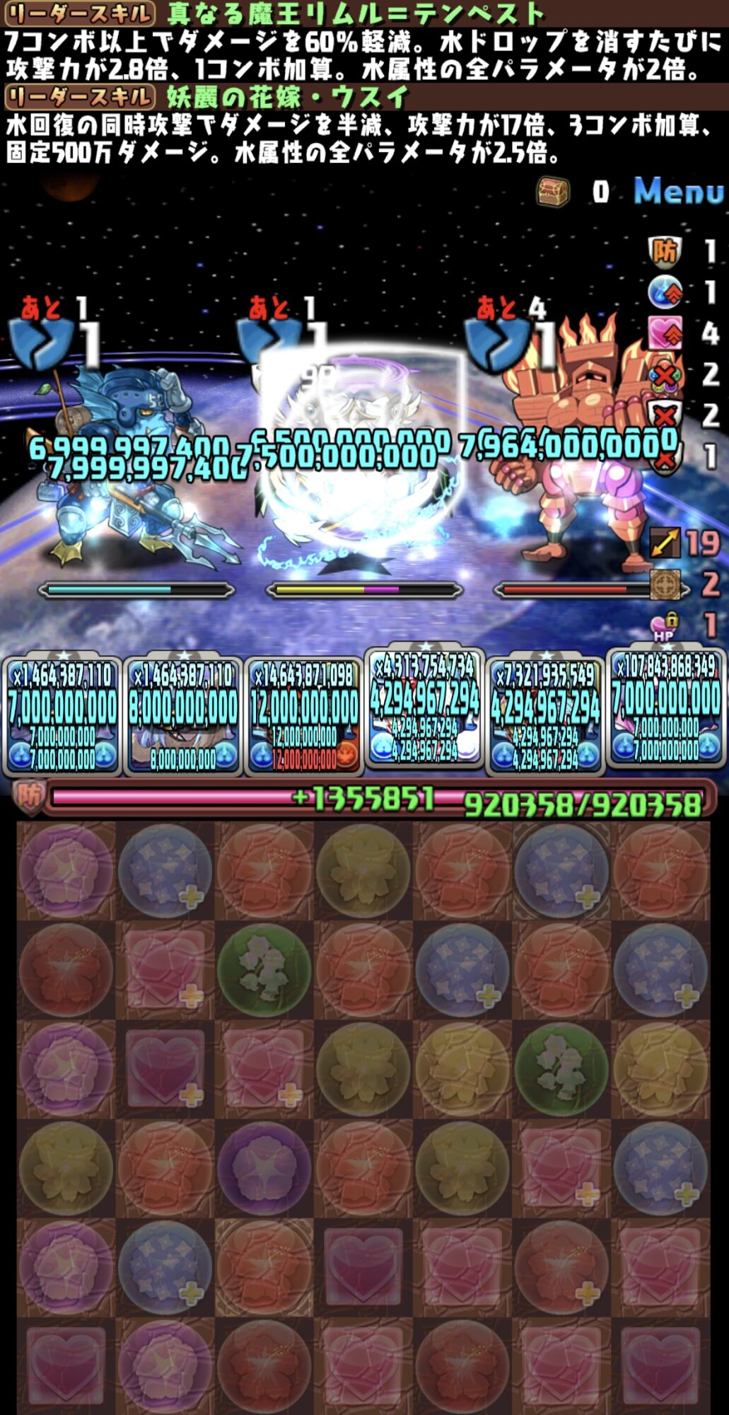 花嫁ウスイが水回復で実質HP5倍、3コンボ加算、500万追い討ちだから良さそうだけど、その花嫁ウスイの相方になれるやつがナツミリとかになっちゃうやんけ