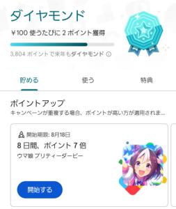 play pointのポイントはGoogle playを決済に挟むようにすると一部の電子書籍サービスなどでも溜まるので電子書籍を買えば買うほどウマ娘を効率よく課金できるという謎めいたことになる