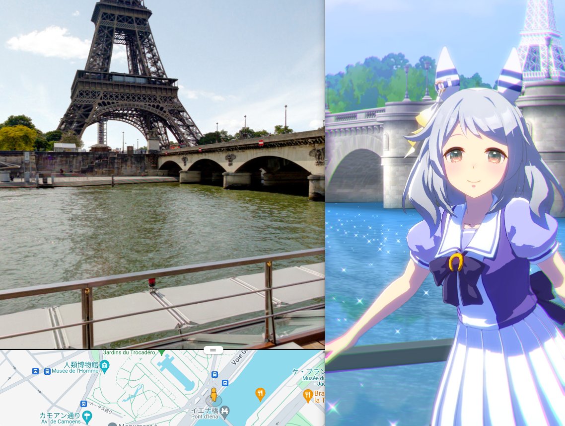 ウマ世界のセーヌ川は入ったら全ての悪を洗い流してくれそうだし水も綺麗だしウマ娘になりそうで素敵やね