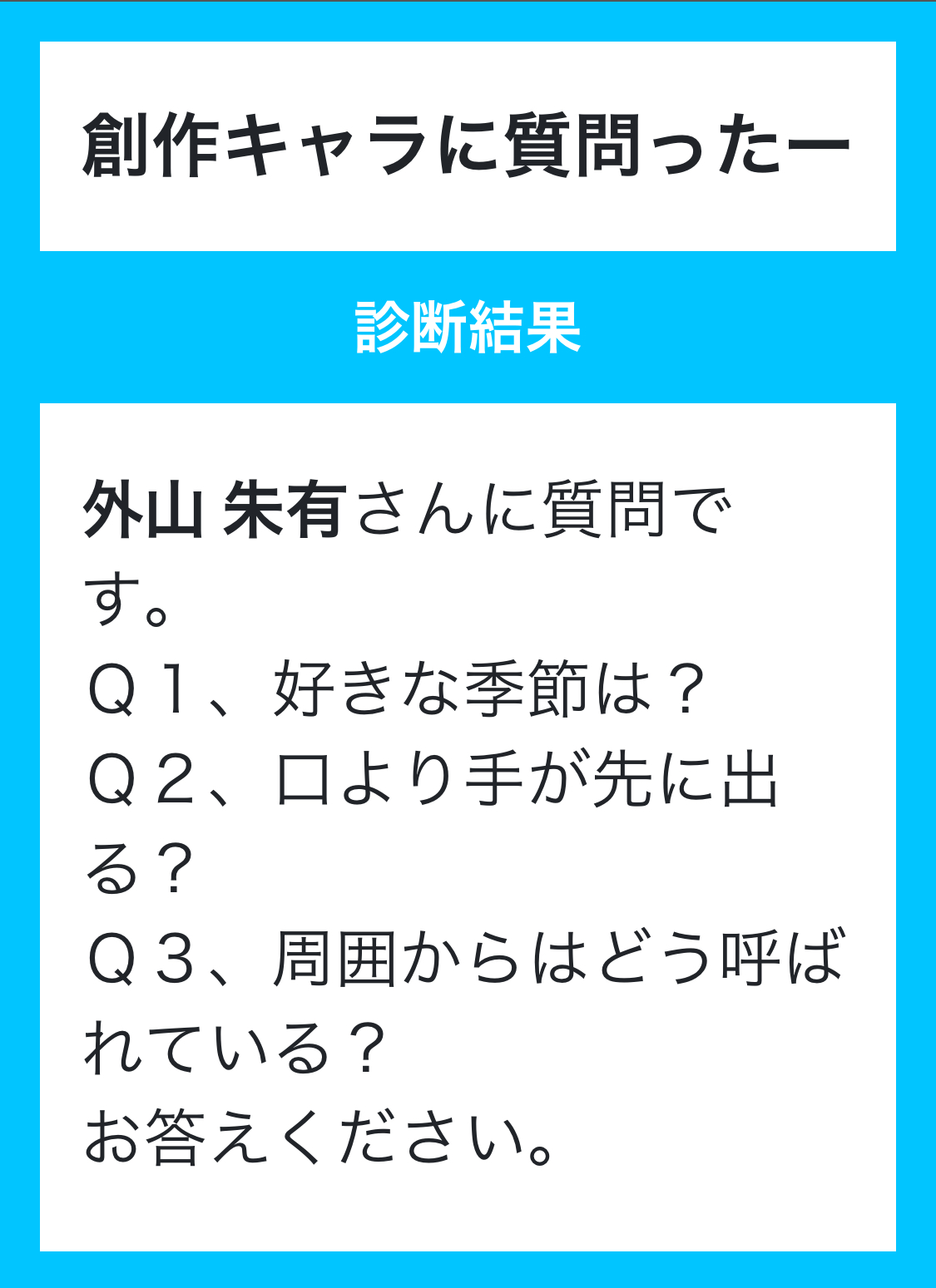 3つあるけど手軽に答えられそうなものが多い印象で既に答えた質問の時とか適当に遊べそう