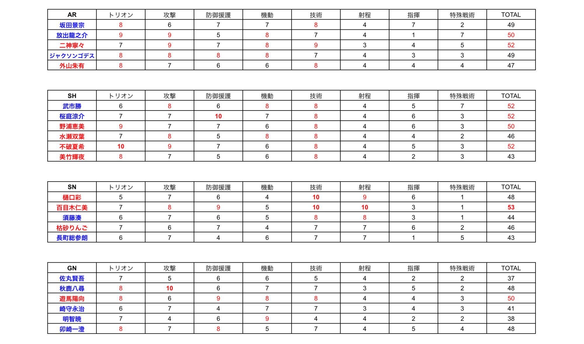 29スレ後半辺りから31スレの途中まで順番に岡崎隊→逢坂隊→枯砂隊→坂田隊→瀧島隊→不破隊→卯﨑隊→八葉隊→煙崎隊→秋鹿隊で部隊別考察