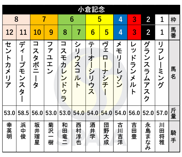 - 62重賞競走枠順24/08/09(金) 23:58:48