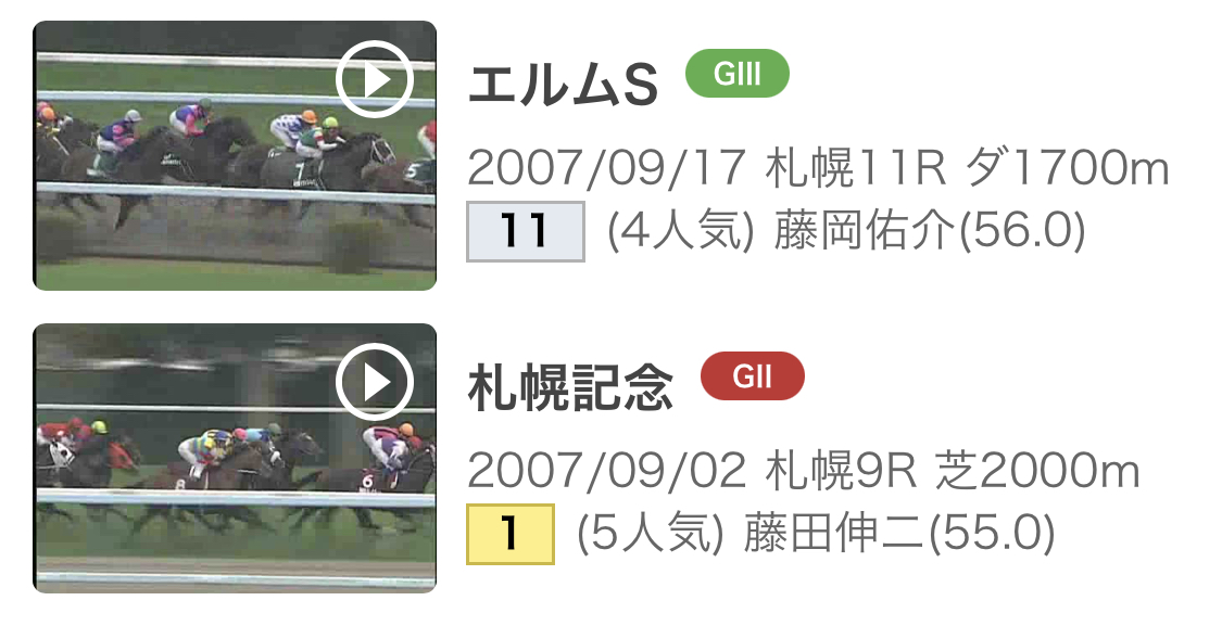 ちなみにファン歴10年未満ぐらいの人はこの日程および日付にかなり違和感があるかもしれんが、当時は札幌記念の2週後(夏競馬最終週)にエルムSが行われており、加えてスプリンターズSの週まで秋の札幌開催が続いていた