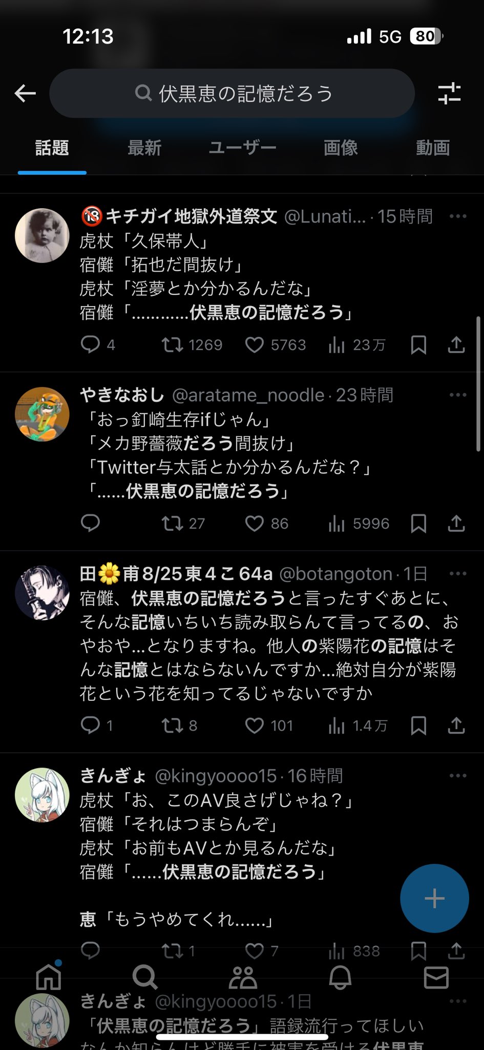 このレベルで我慢できないならミームにされまくってる五条宿儺辺りのファンはどうなるんだよって話だけどな
