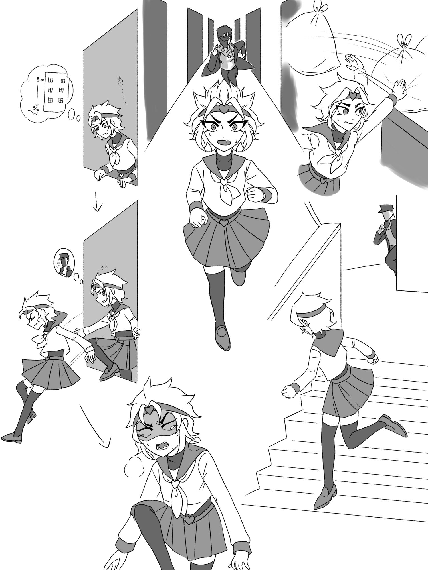 その言葉に従い、ミオはしなやかな脚に全神経を注いで並木道を駆け抜ける。どこかの脇道へ逸れようと視線を巡らせた……瞬間、彼女の前に壁が現れた。急に止まれるはずもなく、顔面からしたたかに激突してしまう。
