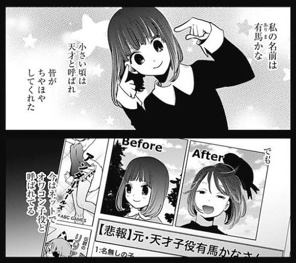 初対面時のかなの癇癪をあかねが「かなちゃんの演技が一番だよ!!」と熱弁し、その言葉に救われたかな。しかし結果的にはかなはだんだんと仕事を失い、対してあかねは天才役者として活躍することになる。
