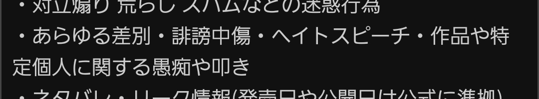 ユーザー利用規約に関しては・他人を不快にさせるような攻撃的な書き込みは避けてください。