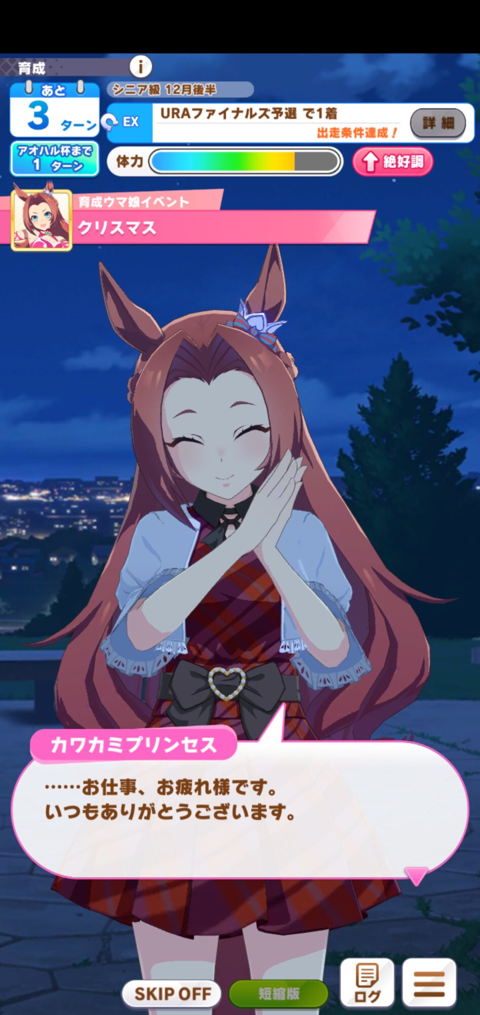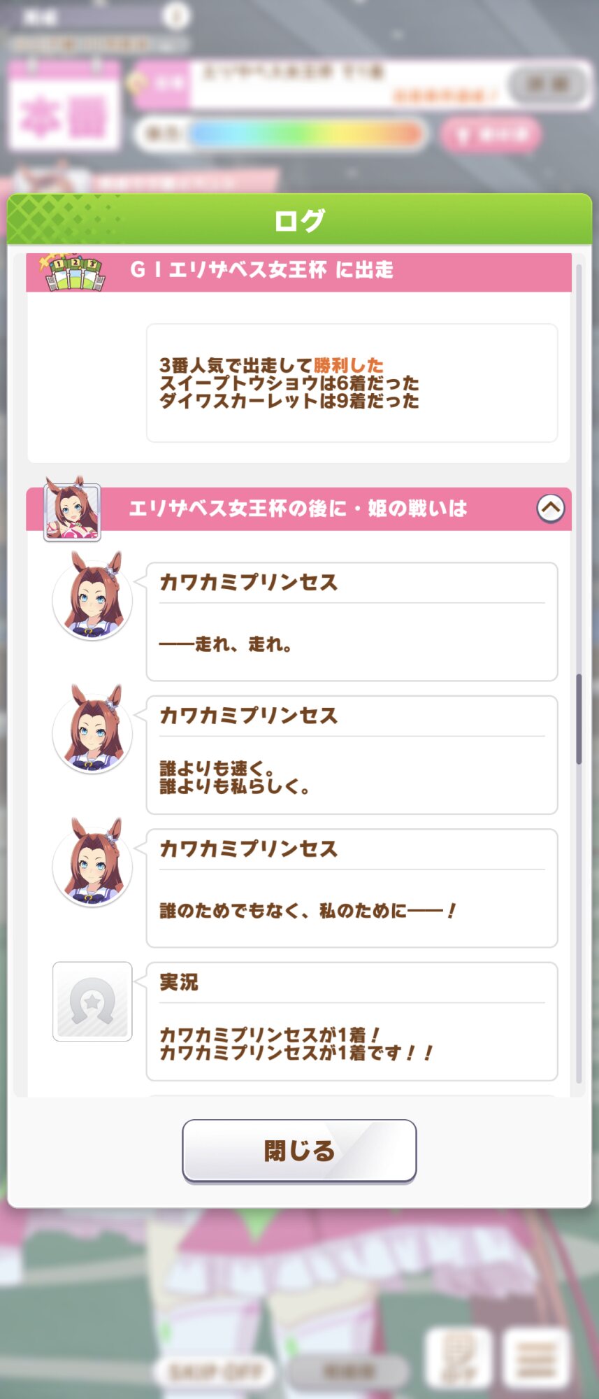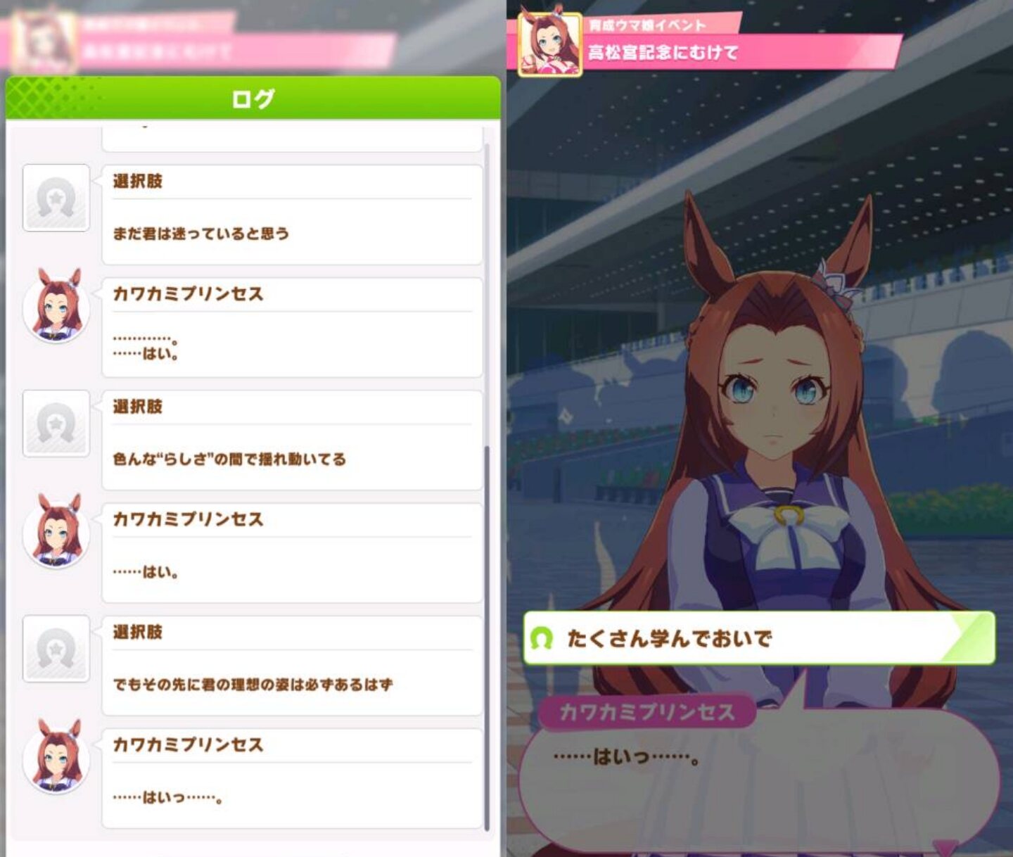 そういえばすげー関係ない事なんですけれどプリンセスの育成内でのイベントの選択肢で何故か抜け出し準備が貰える選択肢があるんですよね、先行Cしかないのにあれなんでなんだろう