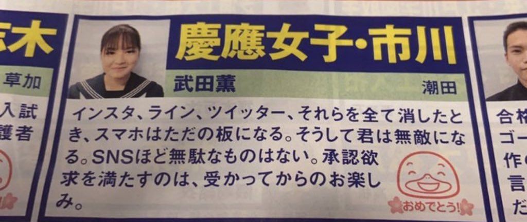 ちなみにスレ画は慶應女子、市川の他に横浜翠嵐にも受かってるらしいよ