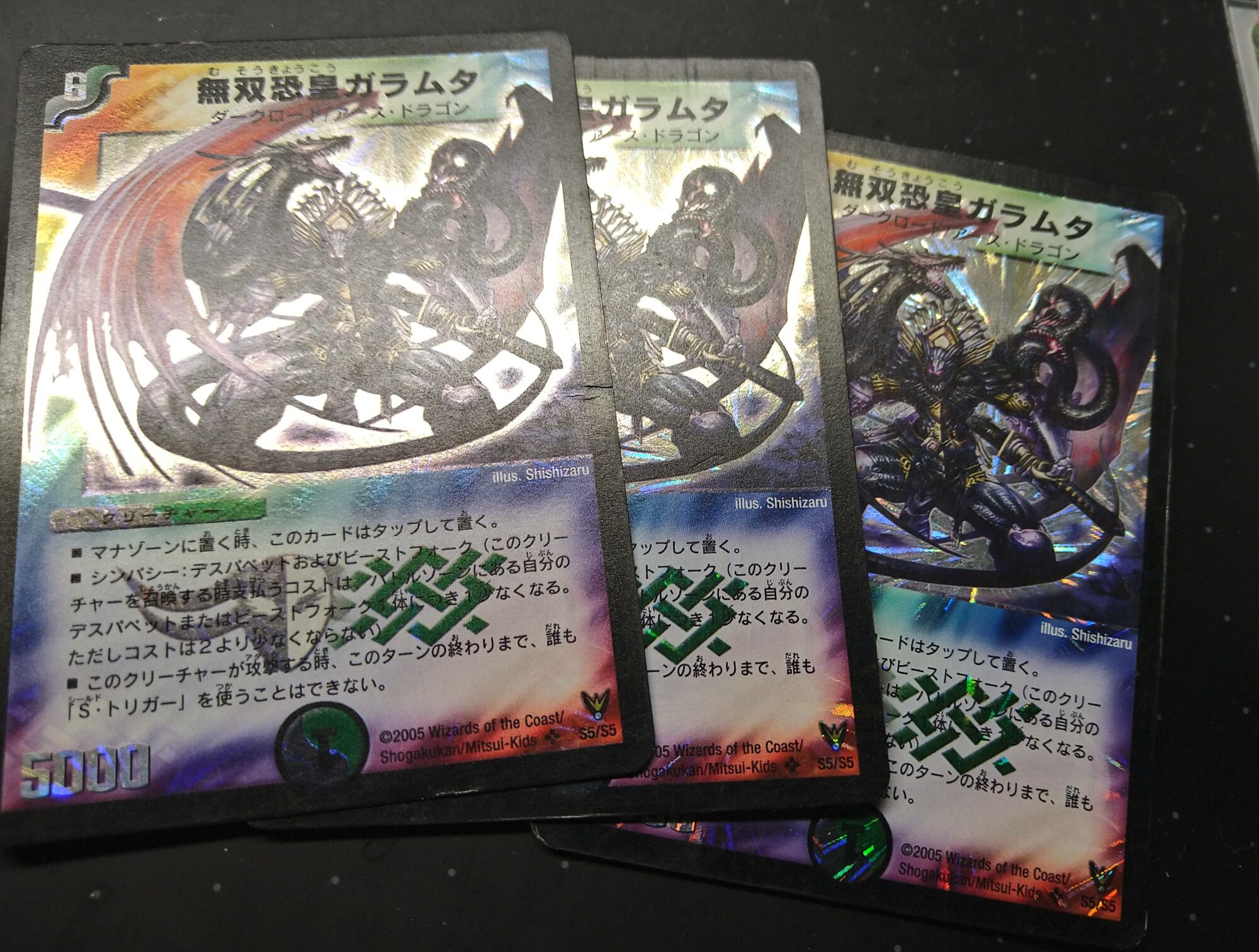 手元にないので確実なことは言えませんがドロンゴーデッキに突っ込んだまま眠っていますわね、スリーブには入れてあるはずなので10年経っていても状態は問題ないかもしれませんわ