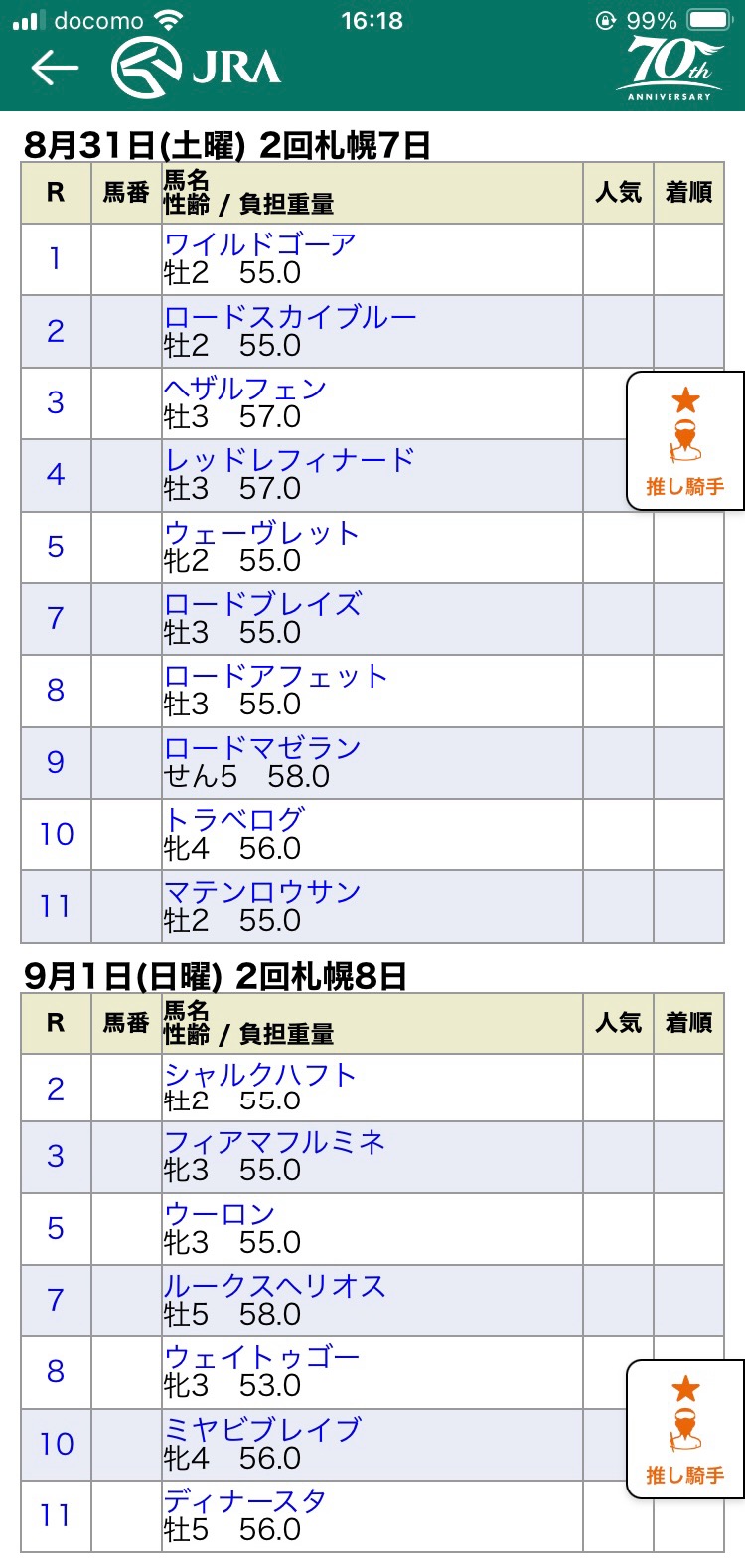 フルゲート以上のレースも多いから明日の16時まではわからんね…一つでも多く乗鞍もらえますように