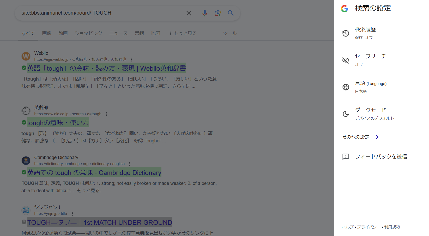 セーフサーチをオフにすればいいのん