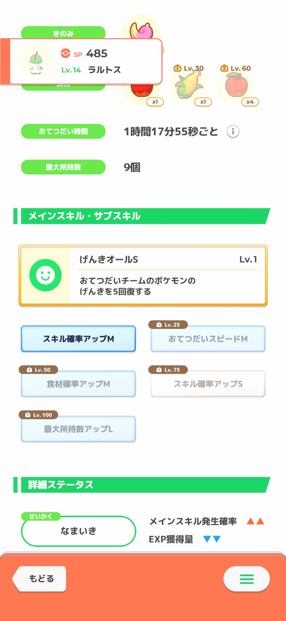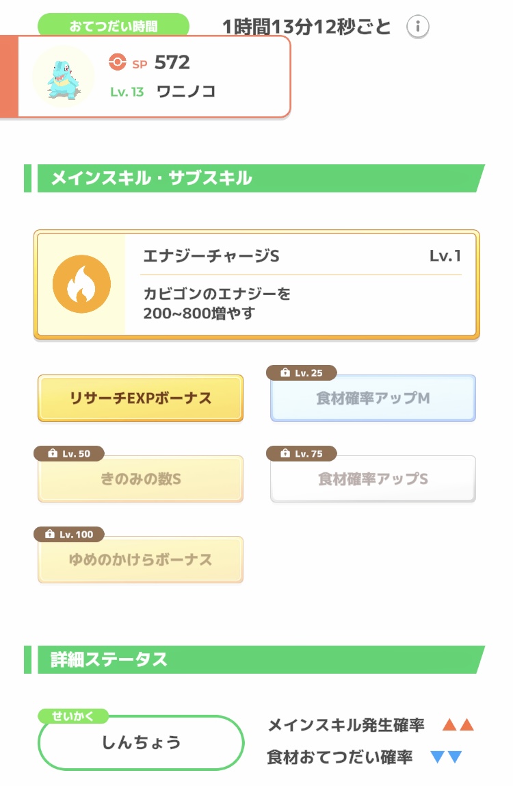食材タイプでAAAきた!と思ったら食材確率ダウンの性格だったり食材確率のサブスキルがなかったりする悲しみ