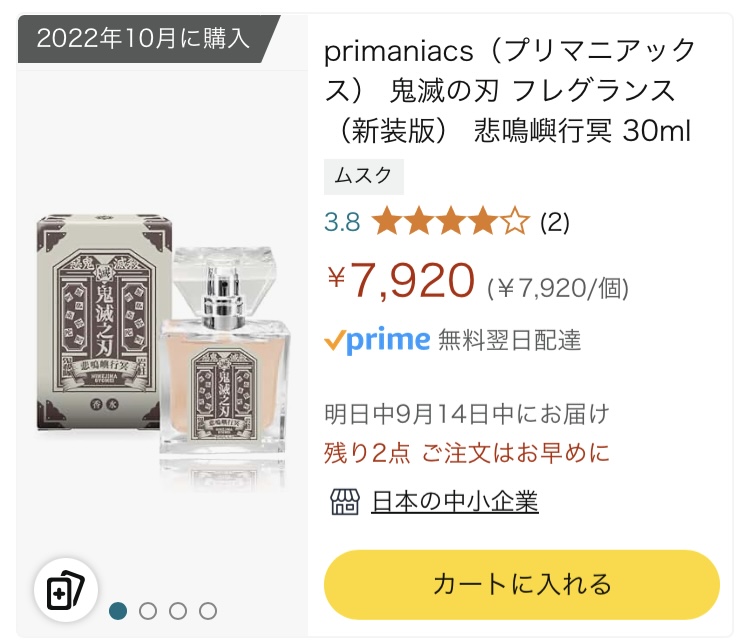 悲鳴嶼さんの香水後日買うと言ったやつですが注文しました