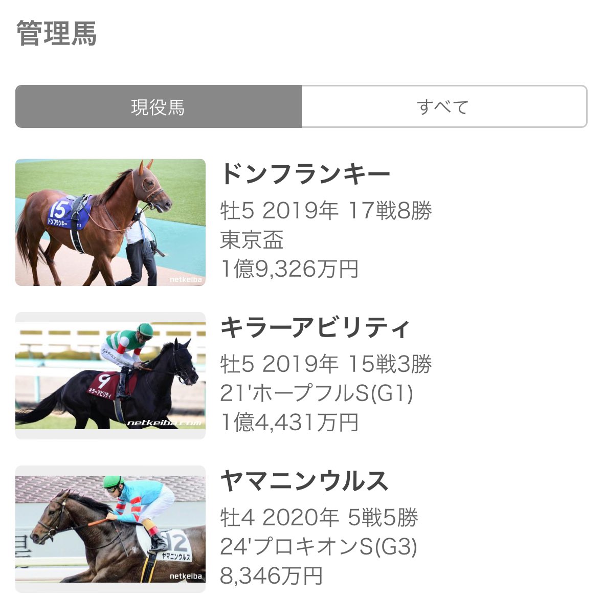 落ち着け厩舎の管理馬一覧や