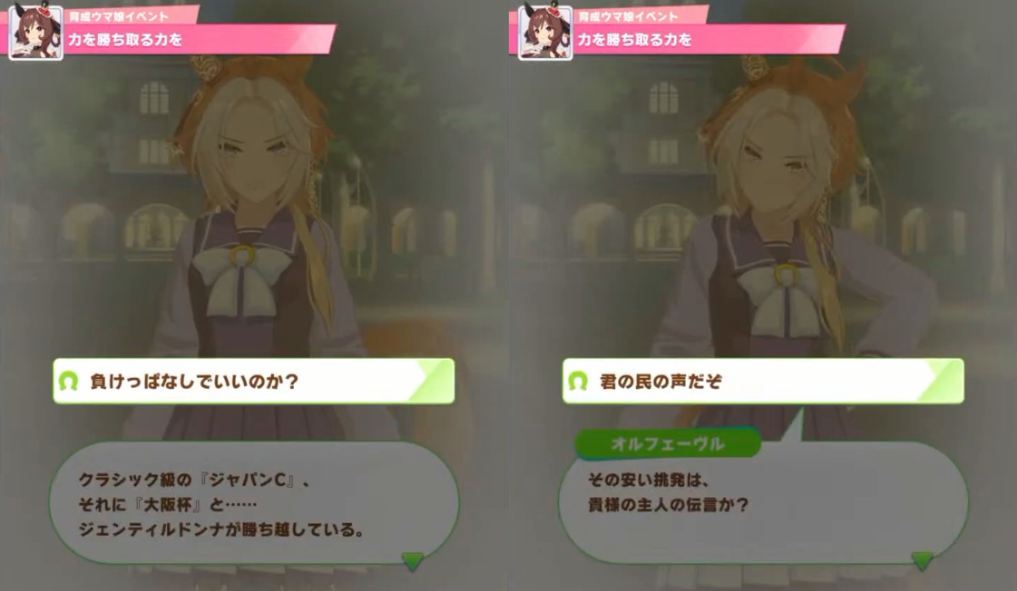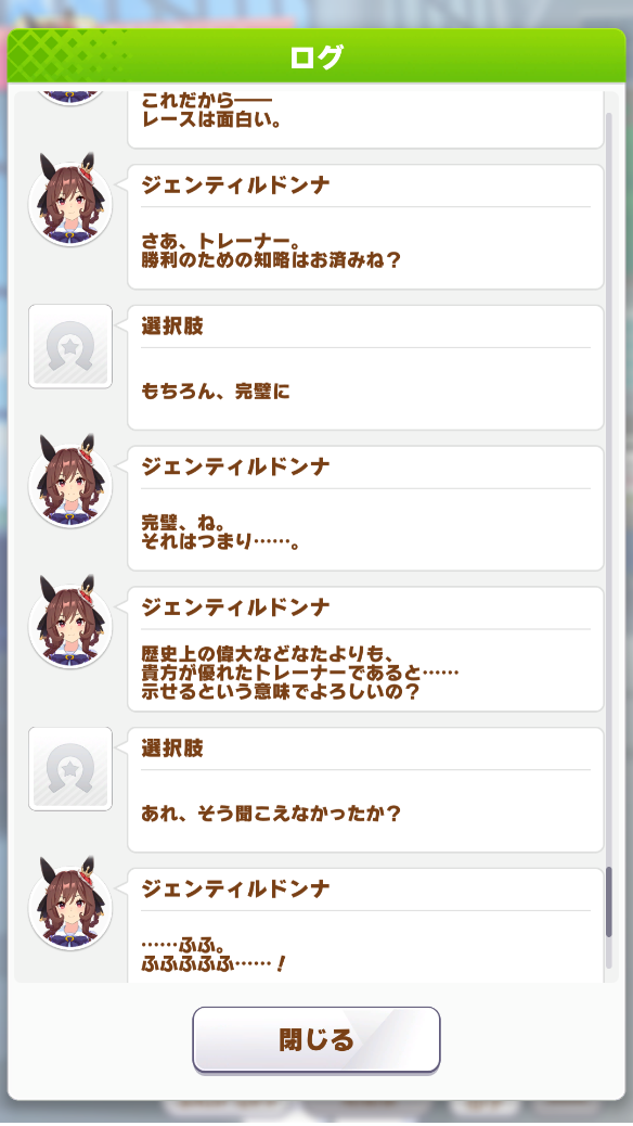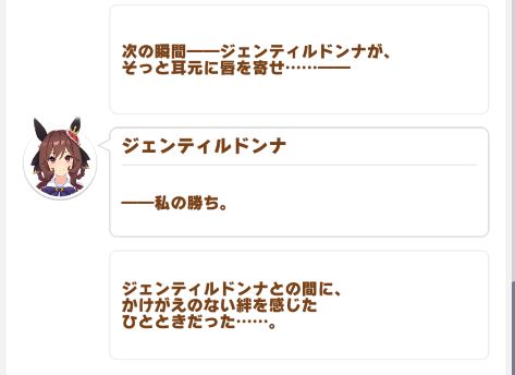 正直ジェンティルシナリオはトレウマ要素は薄いんじゃないかって可能性も考えてたから、期待以上のものがお出しされて歓喜してるわ