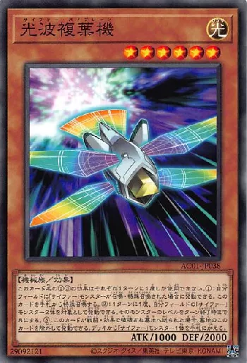 《光波翼機》を手札から特殊召喚して効果を発動し、このカードともう1体をレベル8にして《銀河眼の光波竜》を出すのが狙いとなる。