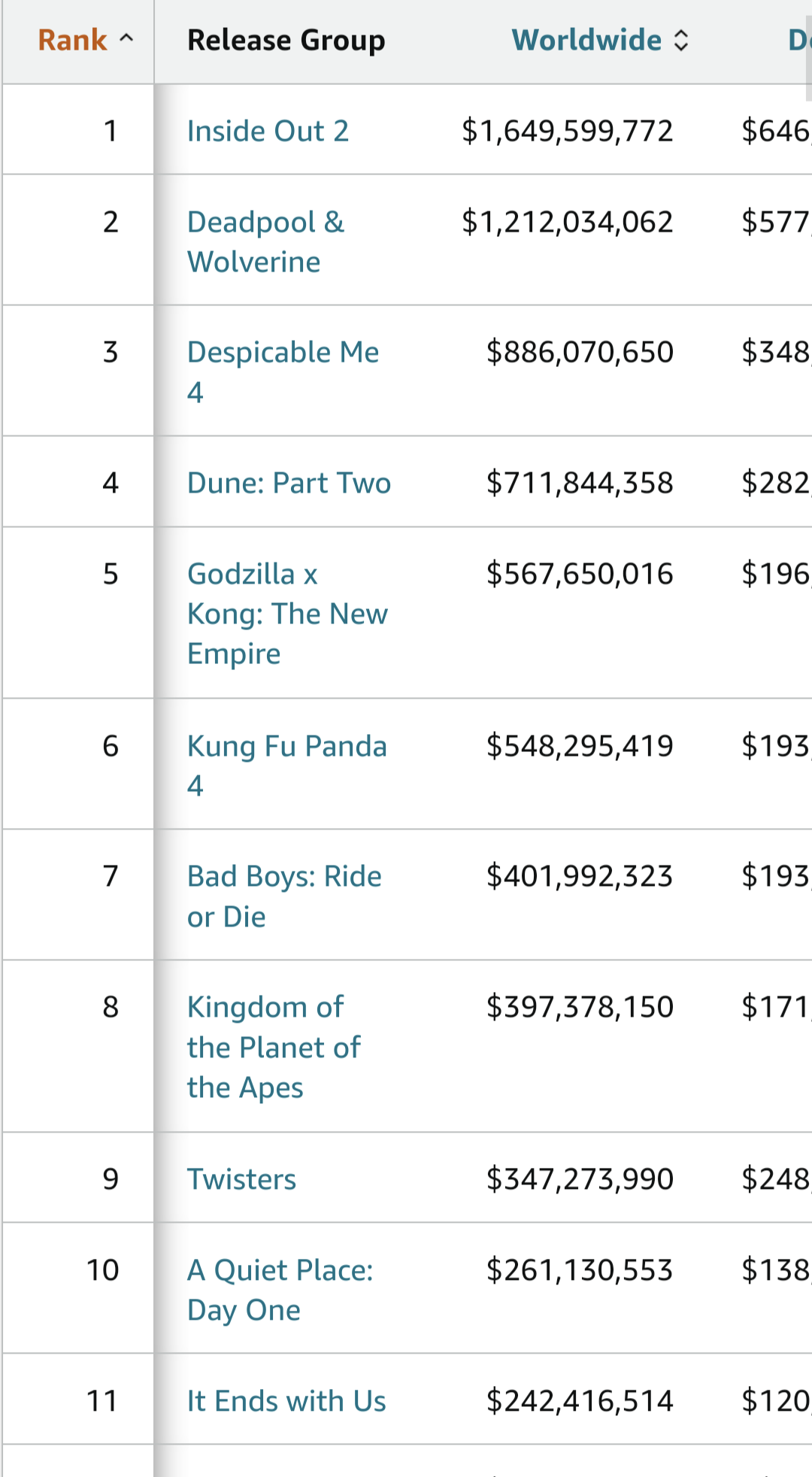 因みに売上だけで見るならデッドプール&ウルヴァリンがぶっちぎりらしいよ