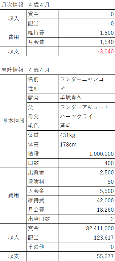 そして、この勝ち上がり数によって、ぼく達現役馬の会員費が絶望的に変わって来る事になるのです