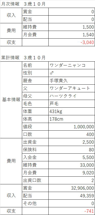 さて、続いて3歳9月を過ぎましたので、現在のオーナーさんの持ち馬を確認しましょう - 20ワンダーニャ◆LnQNHdN87rUr24/08/28(水) 15:48:07