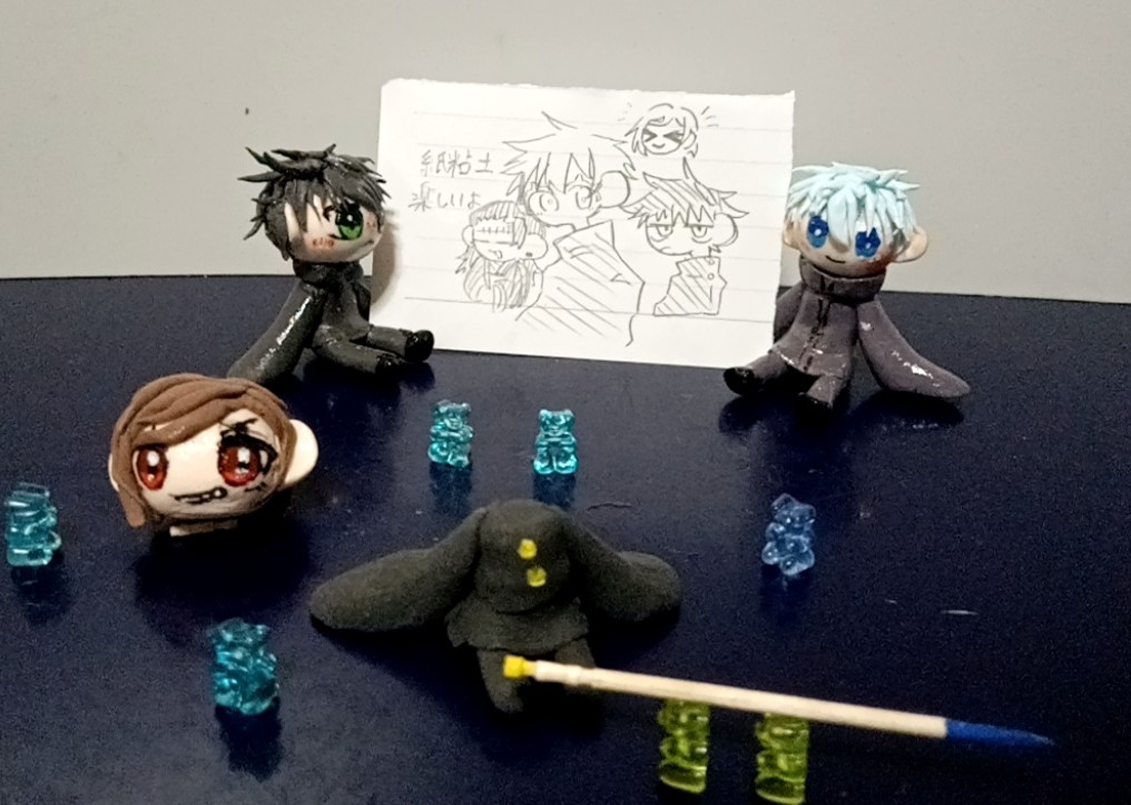 材料でバリケード作ってる紙粘土羂索可愛いね…