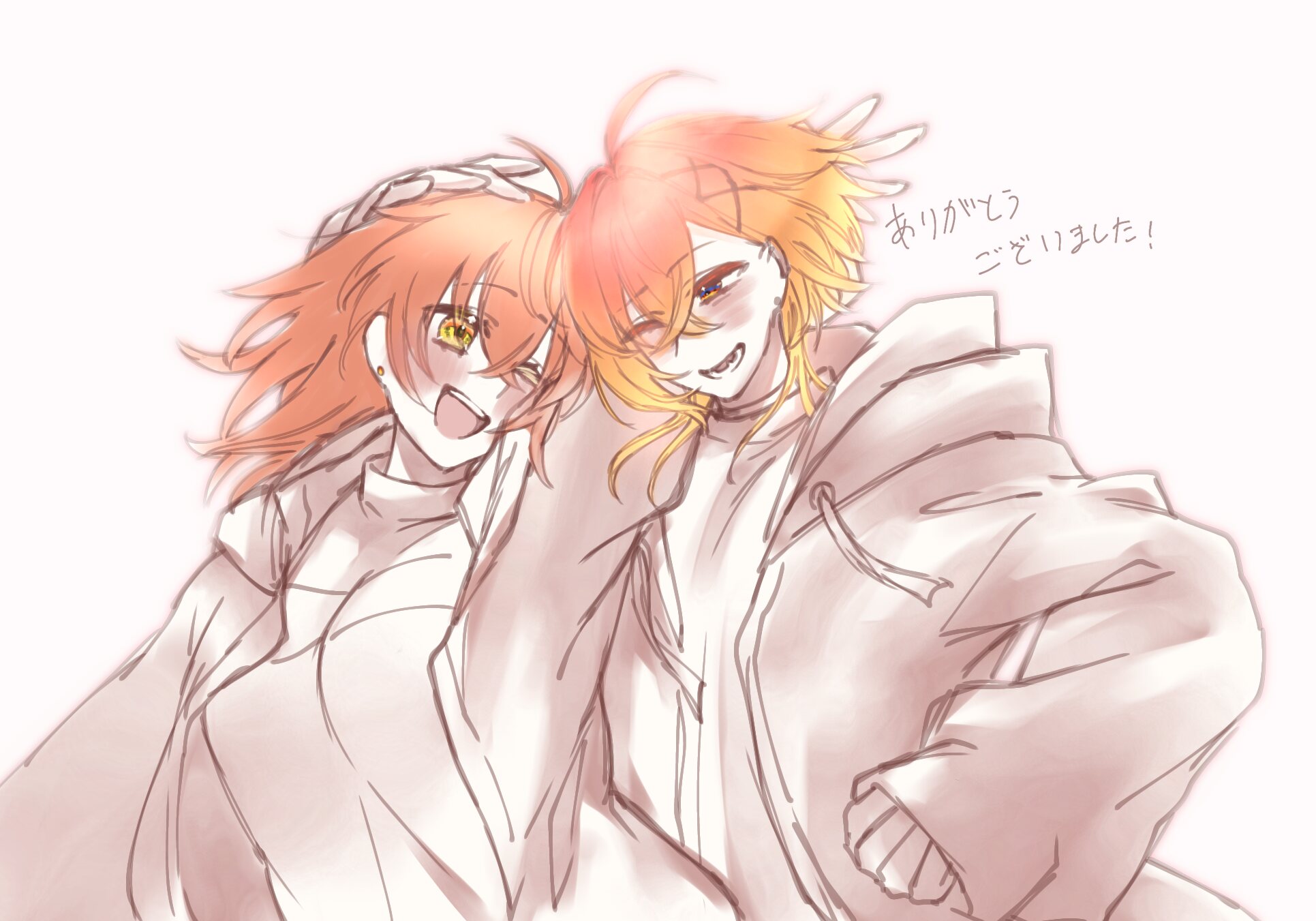 ã©ããšãªãã«ã«ãã¢ã®å¶æã«äŒŒãçœãè£ æã身ã«ãŸãšããæã ãªã¬ã³ãžãéãéã«é»ãšãã£ãè²ãå·®ãè²ã«ãªã£ãŠãããæè¢ãããŠããªãããé²ãã«ãªã£ãŠããçªã¯ãã¹ã¿ãŒã®é«ªãšåãè²ã