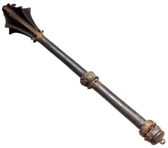 中身まで鉄でできたのは150cm以下ぐらいだそうで、仮に150cmで直径2cmだと3.7kg、直径3cmだと8.3kgとなる