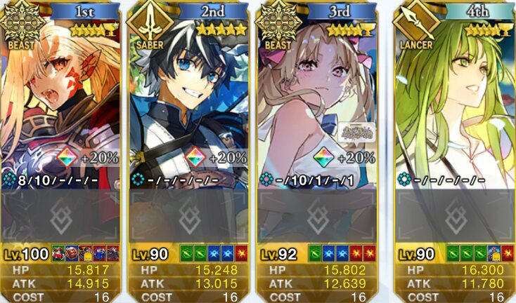 BBちゃん、パーシマ、玉藻、メルト