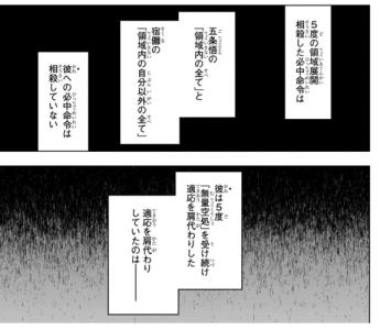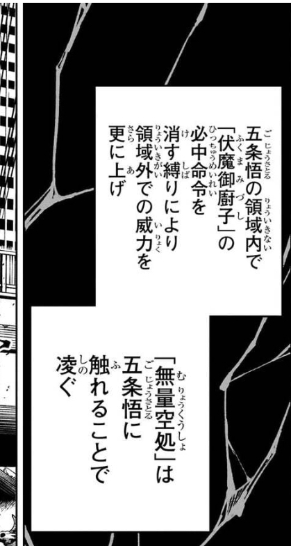 そもそも五条側がマコラ警戒して常に近距離にいながらワンパン狙い縛りする必要なくなるから領域戦が発生しなくなる分本編の描写じゃ判断し辛いんだよね